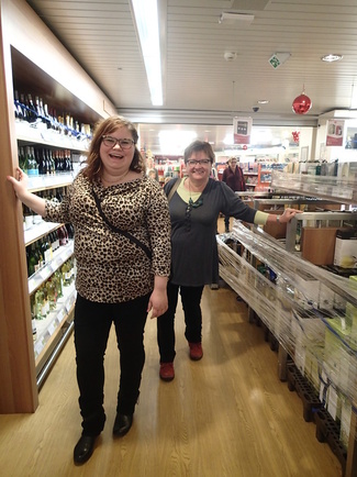 ![]() Menomatkalla laiva keikkui niin, että kaupan pullokin kaatuilivat | ![]() välillä oli pakko pitää kiinni hyllyn reunoista |